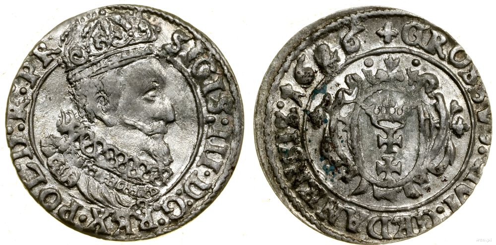 Opis: | Polska - Zygmunt III Waza (1587–1632) - miasto Gdańsk, grosz, 1626, Gdańsk, końcówka legendy awersu PR |