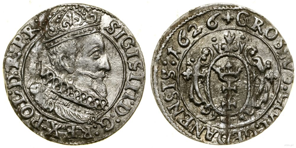 Opis: | Polska - Zygmunt III Waza (1587–1632) - miasto Gdańsk, grosz, 1626, Gdańsk, końcówka legendy awersu POL D R PR |