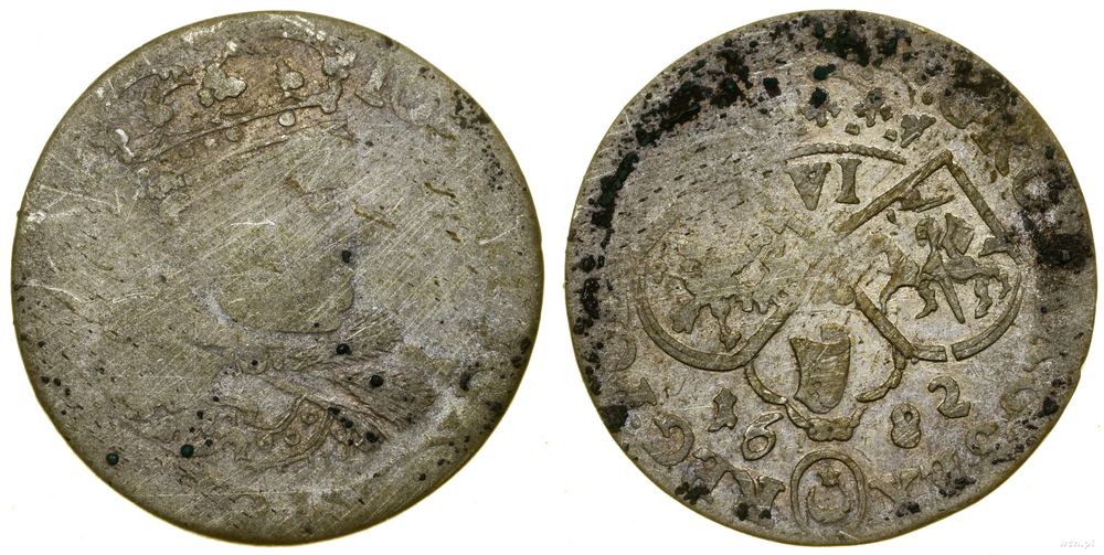 Opis: | Polska - Jan III Sobieski (1674–1696) - monety koronne, szóstak, 1682, Kraków, wąskie popiersie w koronie i zbroi, bez obwódki na awersie |