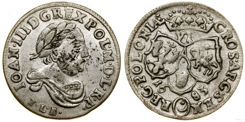 Opis: | Polska - Jan III Sobieski (1674–1696) - monety koronne, szóstak, 1683, Bydgoszcz, popiersie władcy w wieńcu laurowym i płaszczu, u dołu rewersu herb Leliwa, klejnoty w koronie 5/5 |