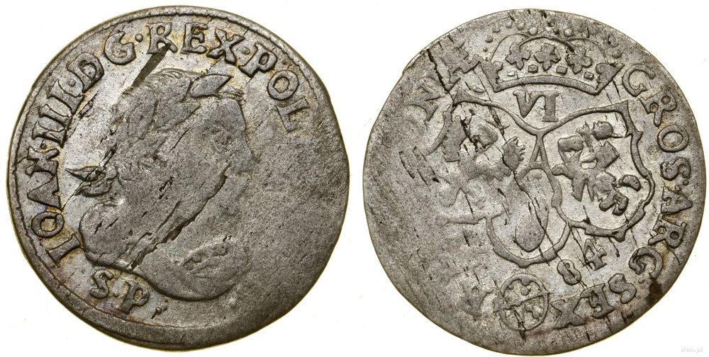 Opis: | Polska - Jan III Sobieski (1674–1696) - monety koronne, szóstak, 1684 SP, Bydgoszcz, cztery nity w górnym okuciu kirysu |