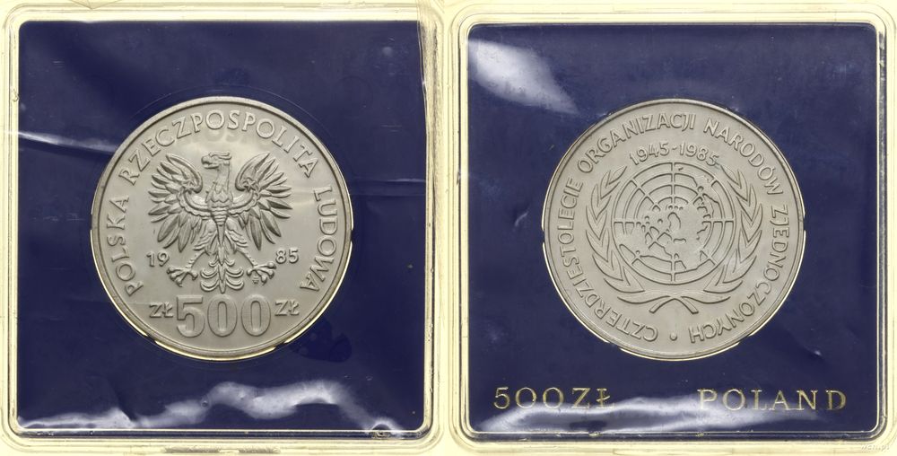 Opis: | Polska - Polska Rzeczpospolita Ludowa (1952–1989) - monety obiegowe i kolekcjonerskie, 500 złotych, 1985, Warszawa, Czterdziestolecie Organizacji Narodów Zjednoczonych (1945–1985) |