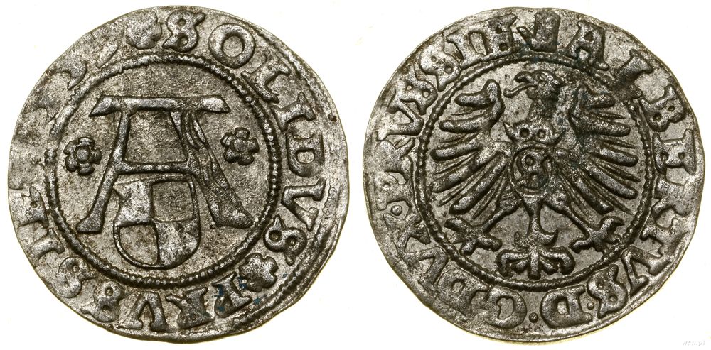 Opis: | Prusy Książęce (1525–1657) - Albert Hohenzollern (1525–1568), szeląg, 1557, Królewiec |