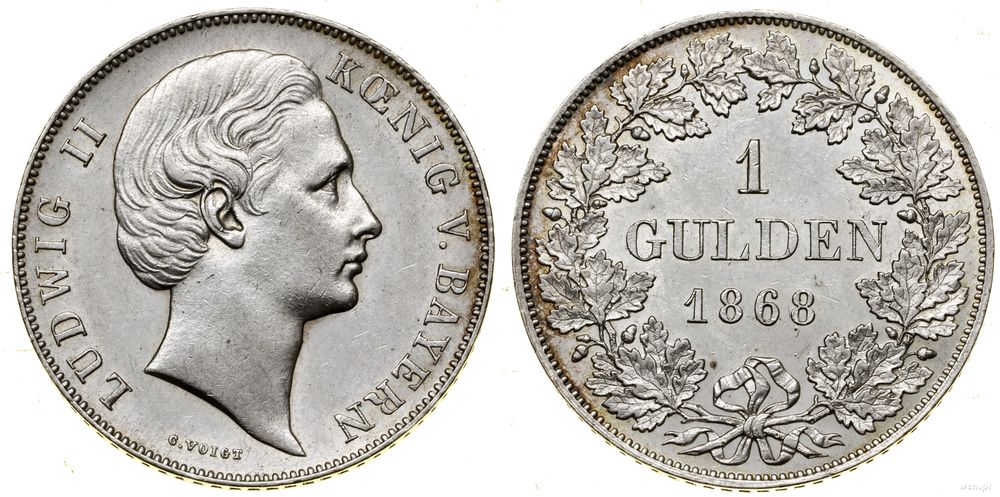 Opis: | Niemcy - Bawaria - Ludwik II (1864–1886), 1 gulden, 1868, Monachium |