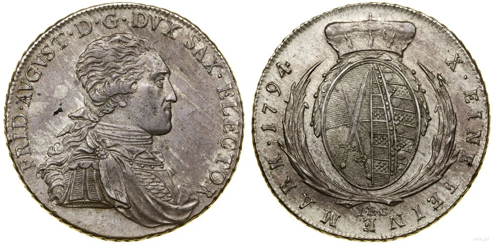 Opis: | Niemcy - Saksonia - linia albertyńska (1547–1918) - Fryderyk August III (1763–1806), talar, 1794 IEC, Drezno |