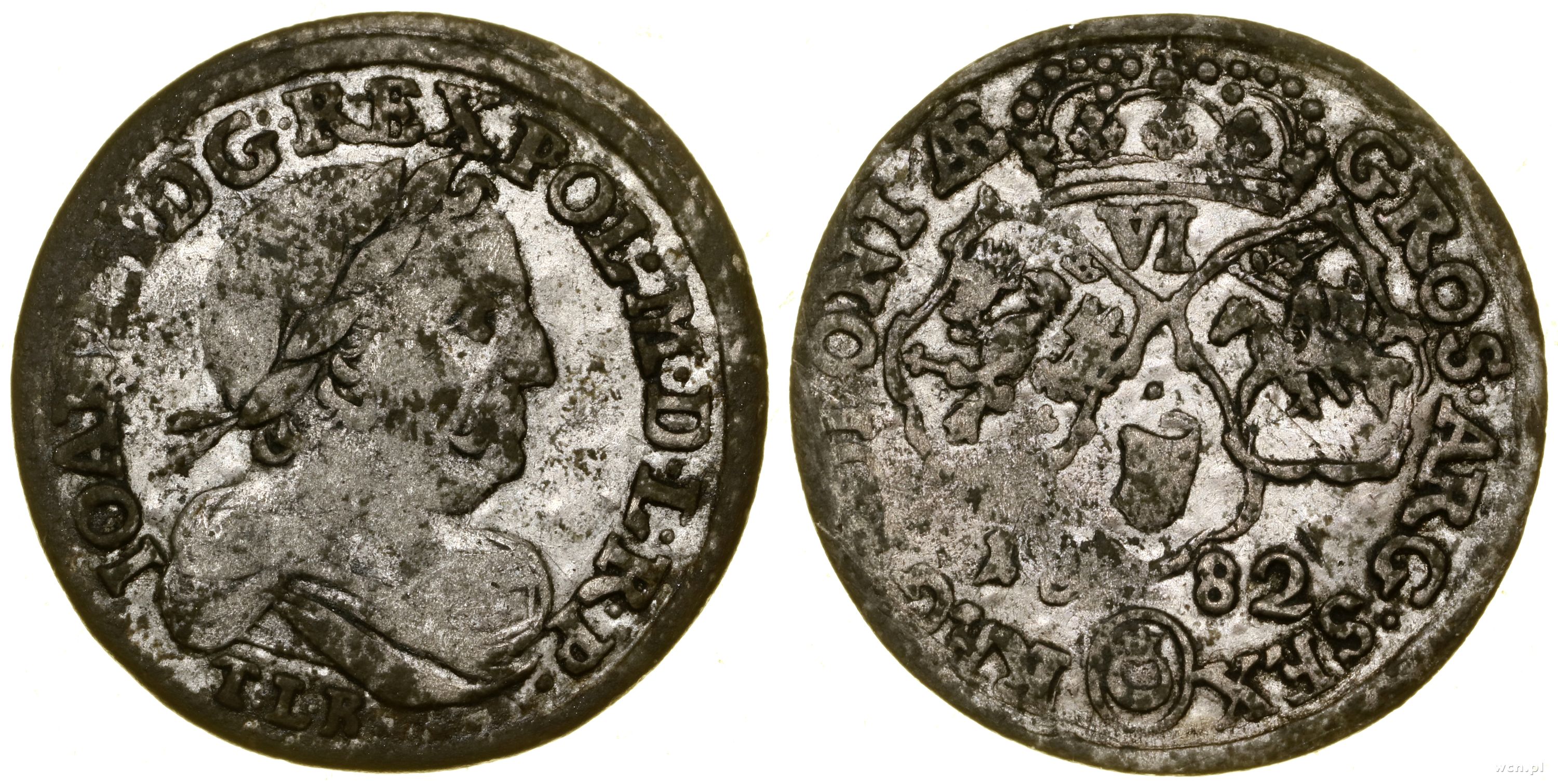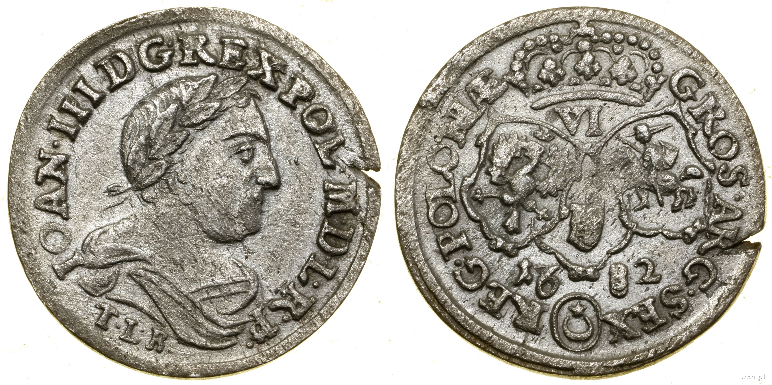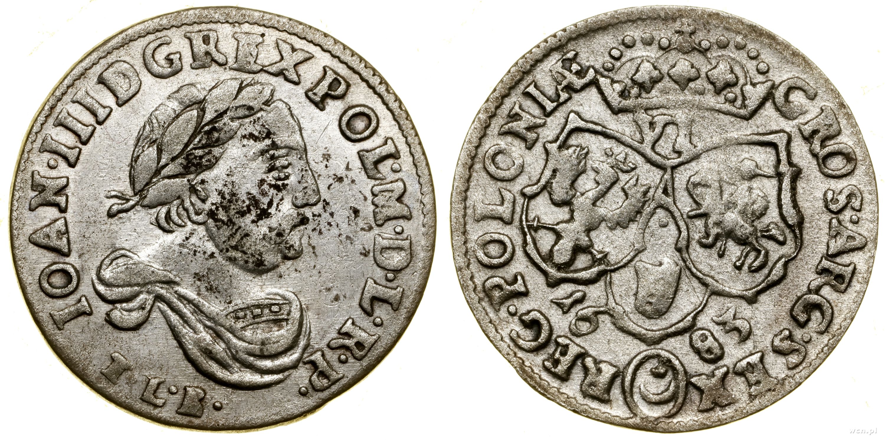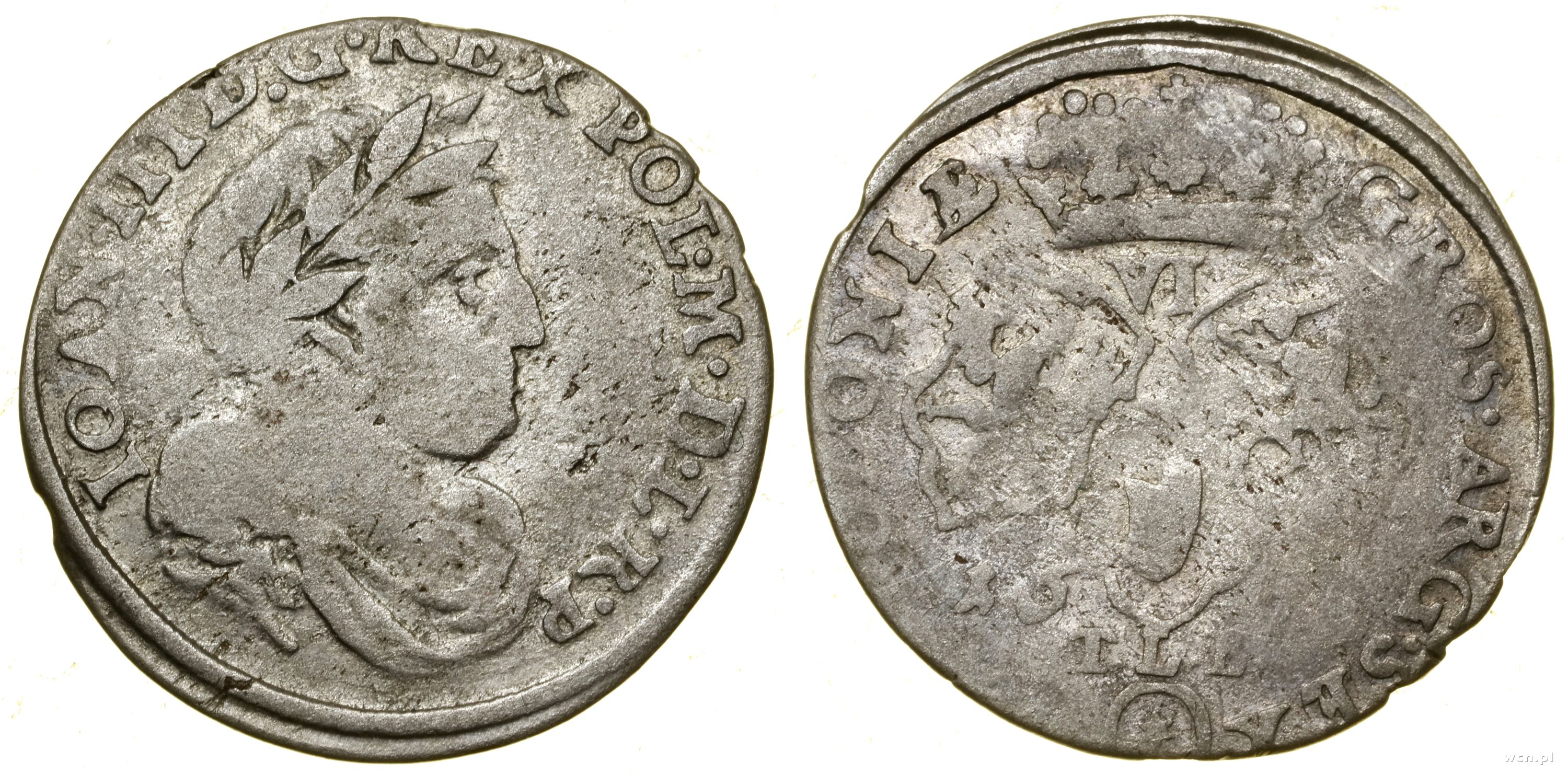 popiersie króla w wieńcu laurowym i płaszczu, herb Leliwa... | III |