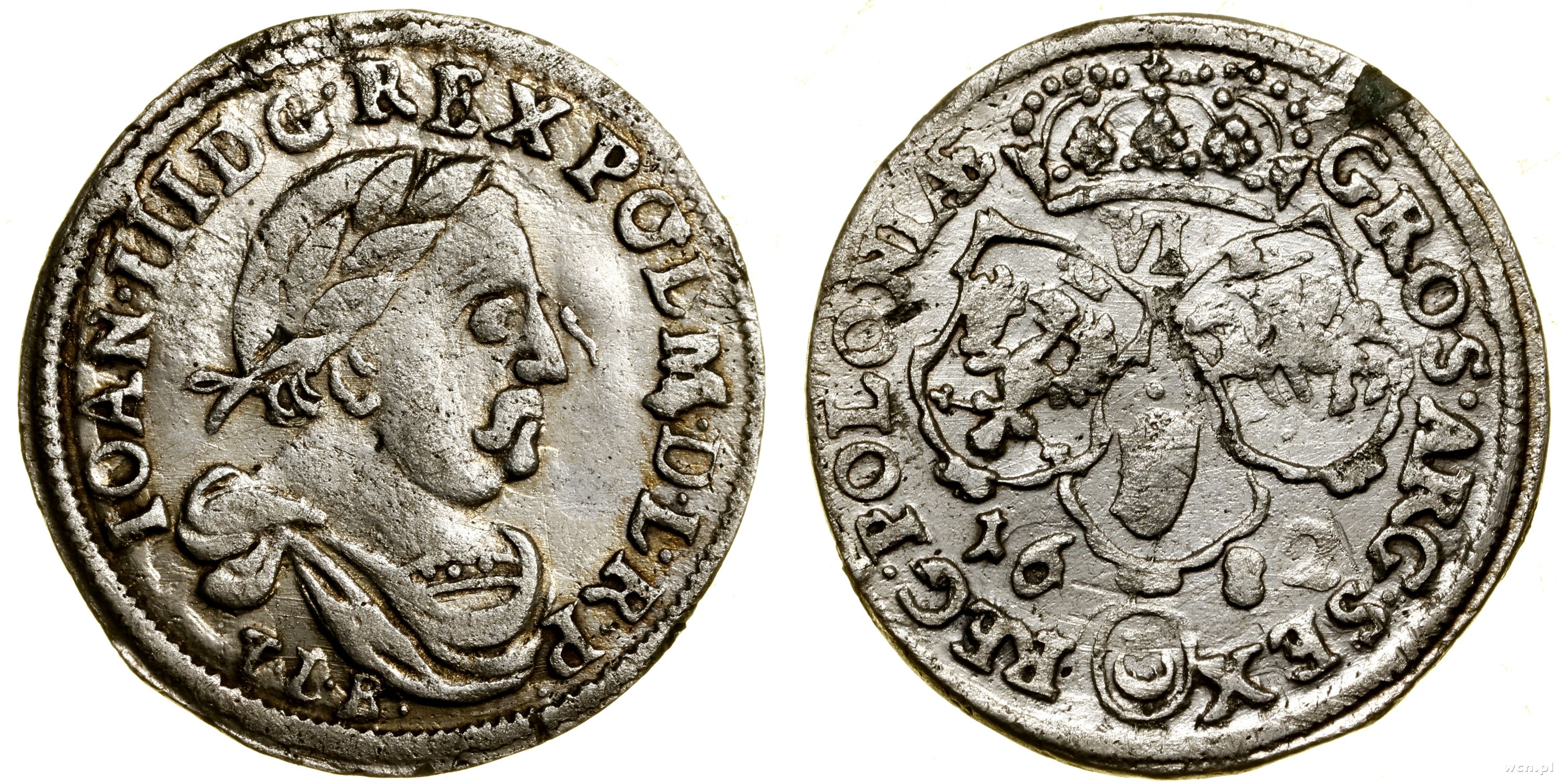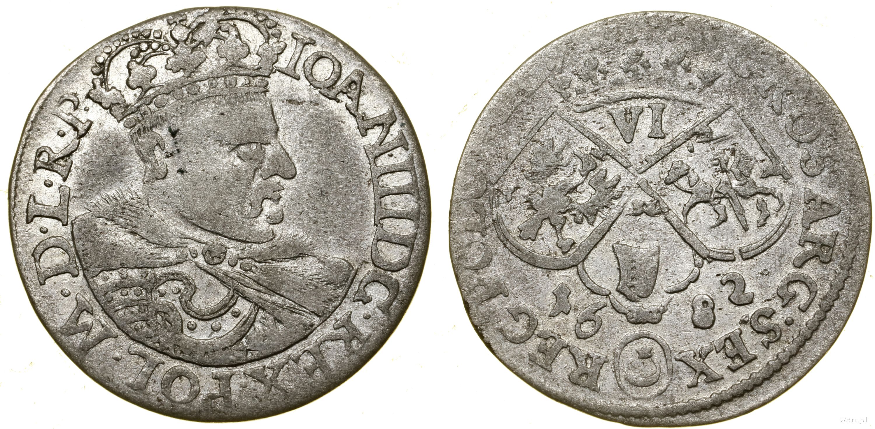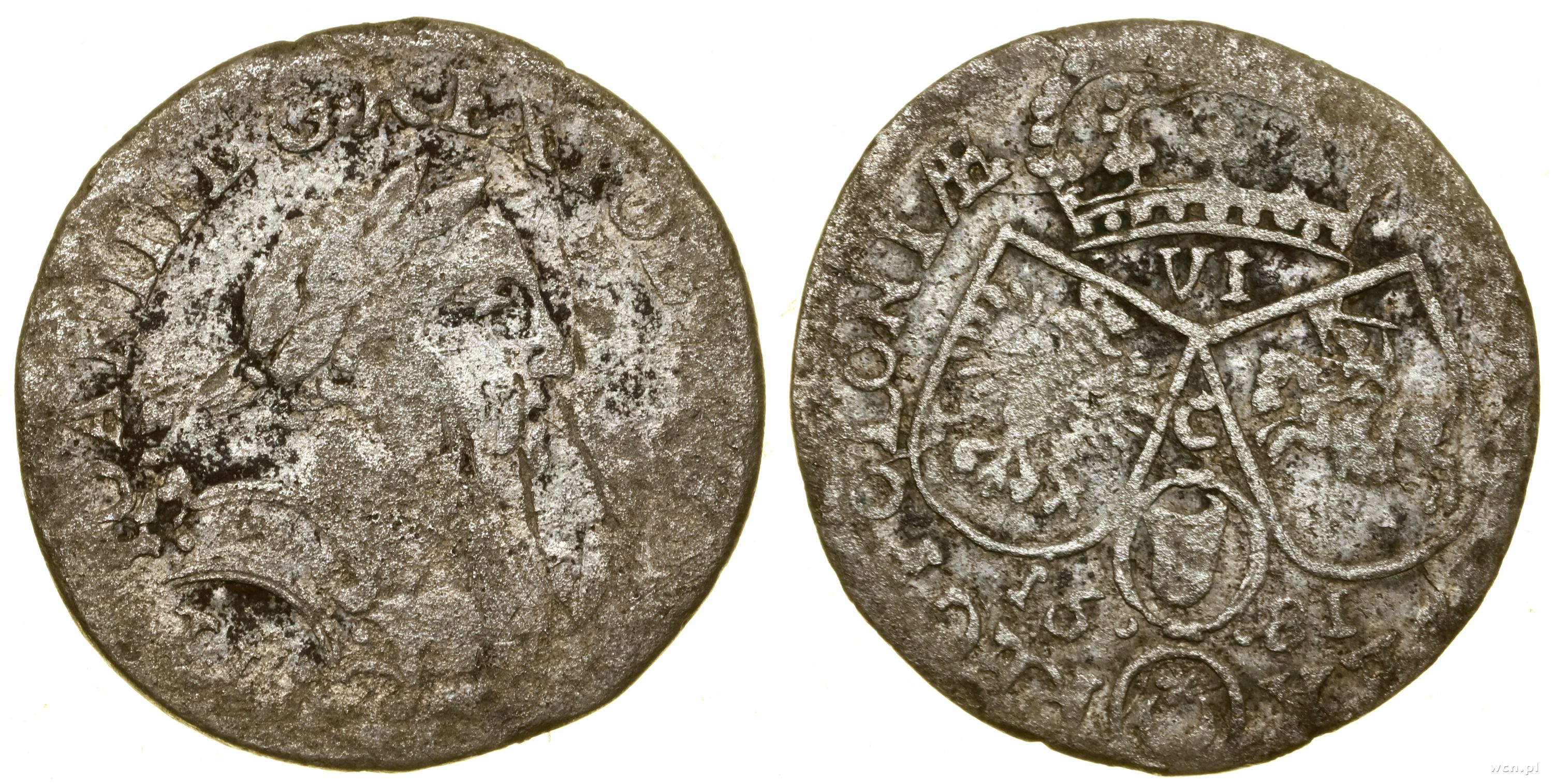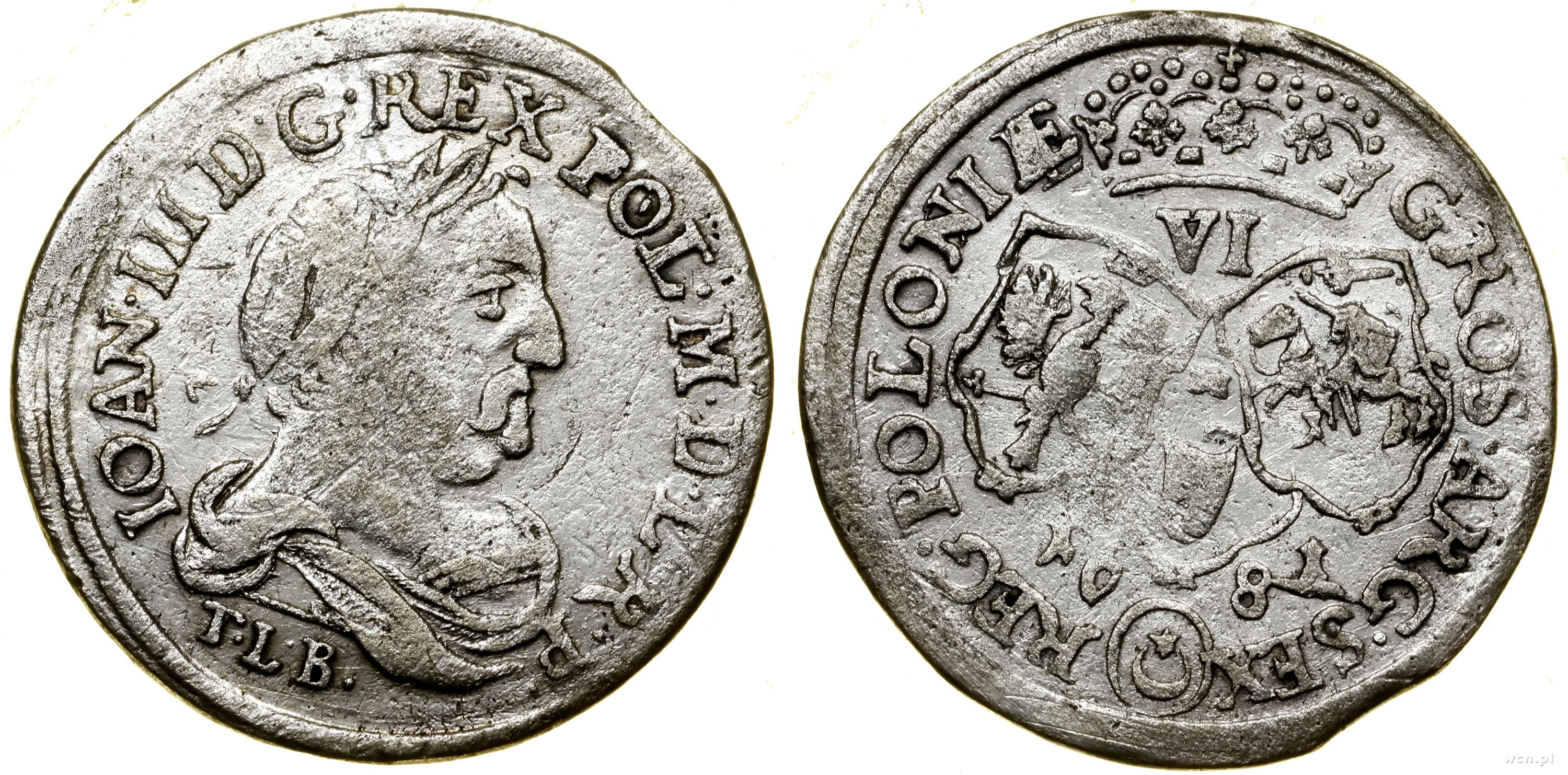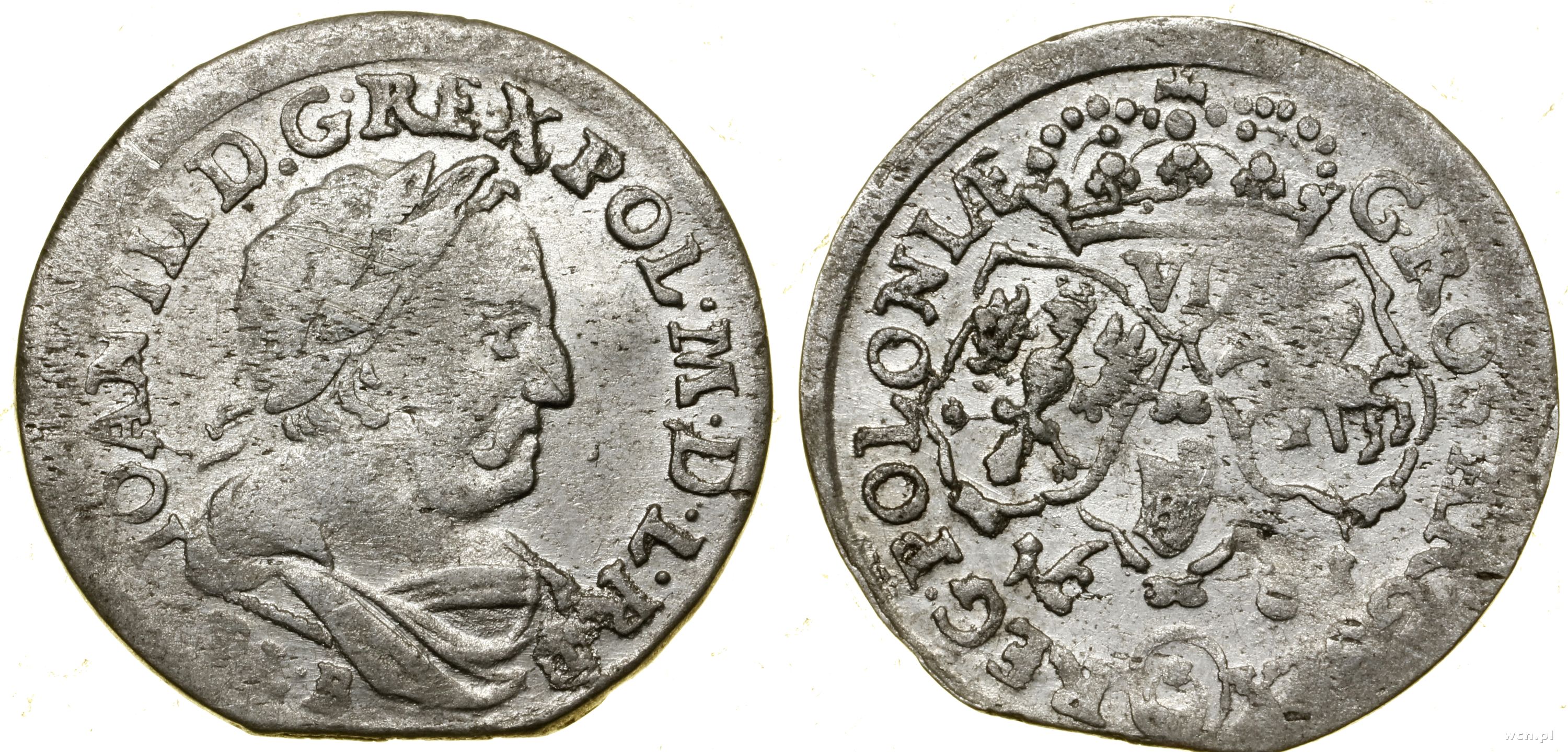 popiersie króla w wieńcu laurowym i płaszczu, herb Leliwa... | III |