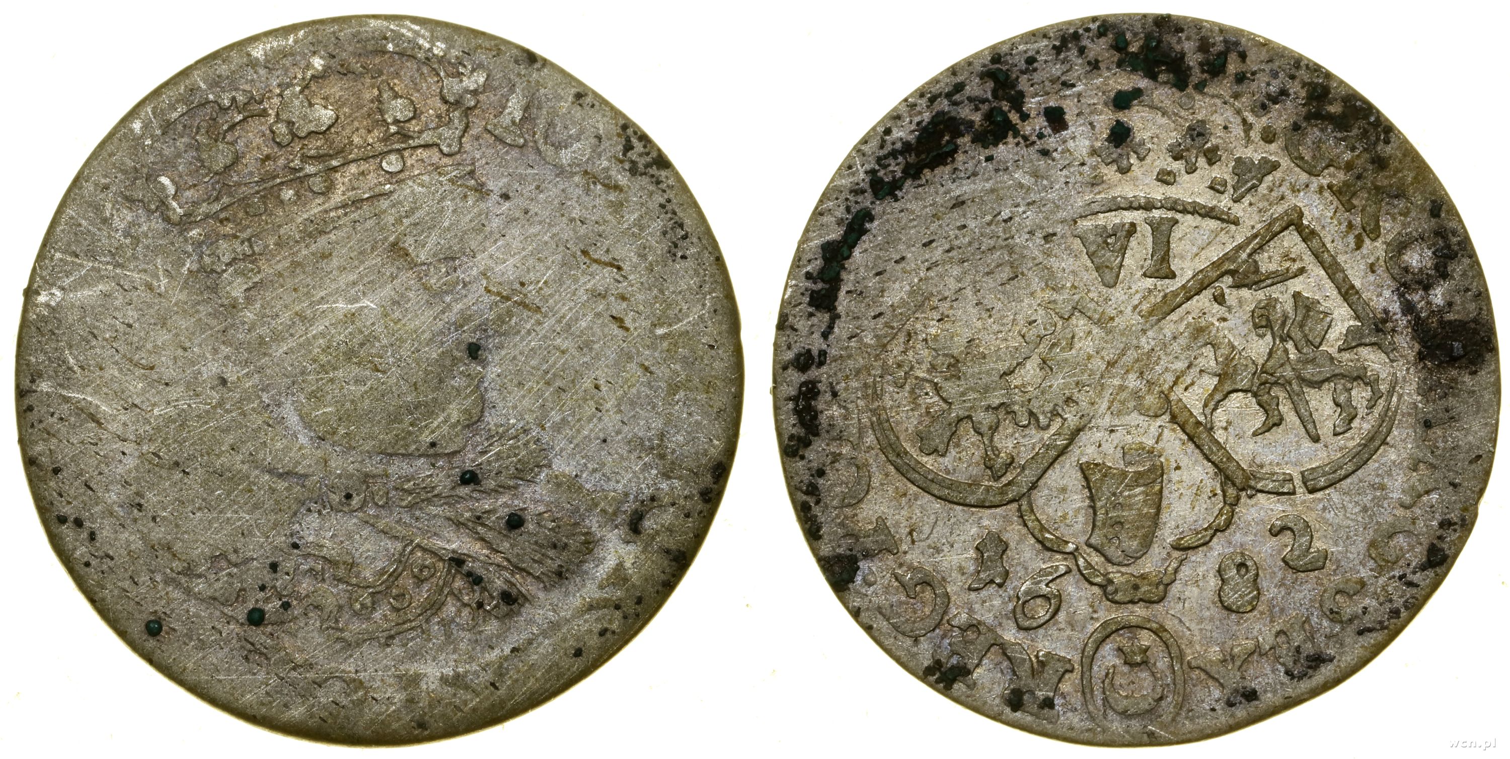 popiersie króla w zbroi, litera C pomiędzy trzema tarczam... | IV/V |