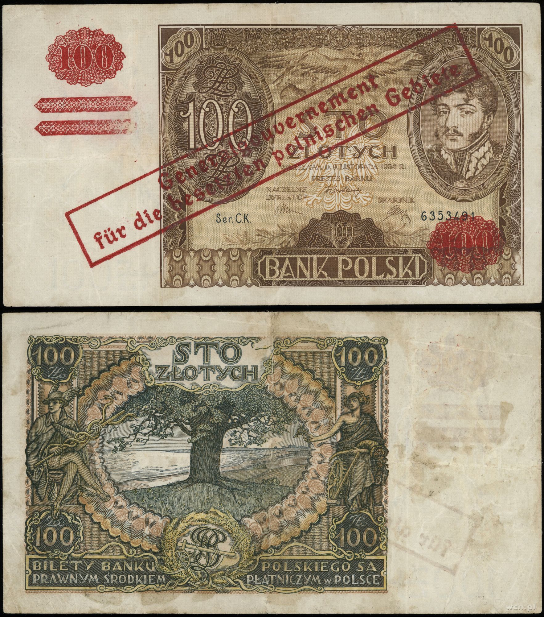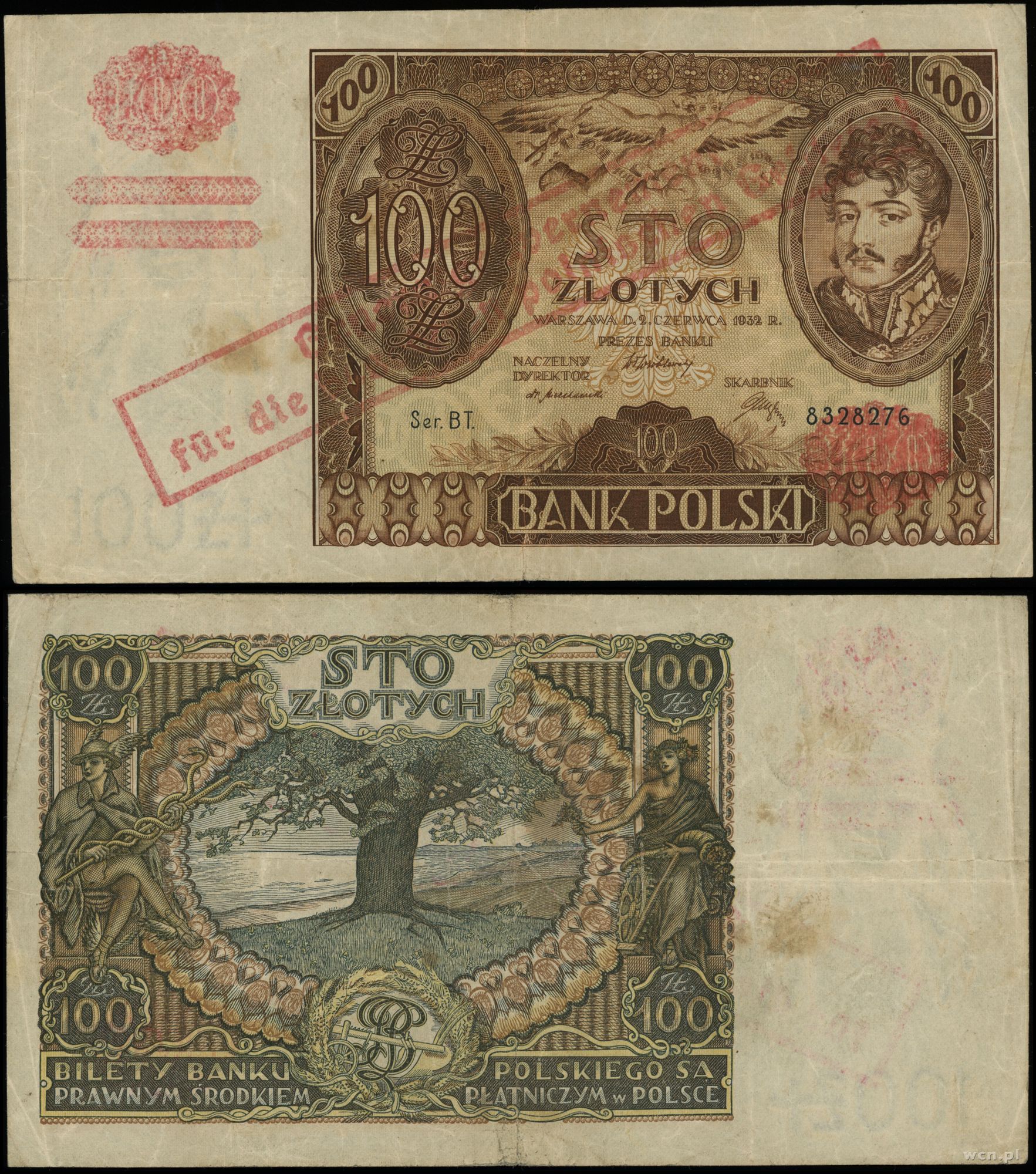 fałszywy nadruk na banknocie 100 złotych 9.11.1934, seria... | IV |