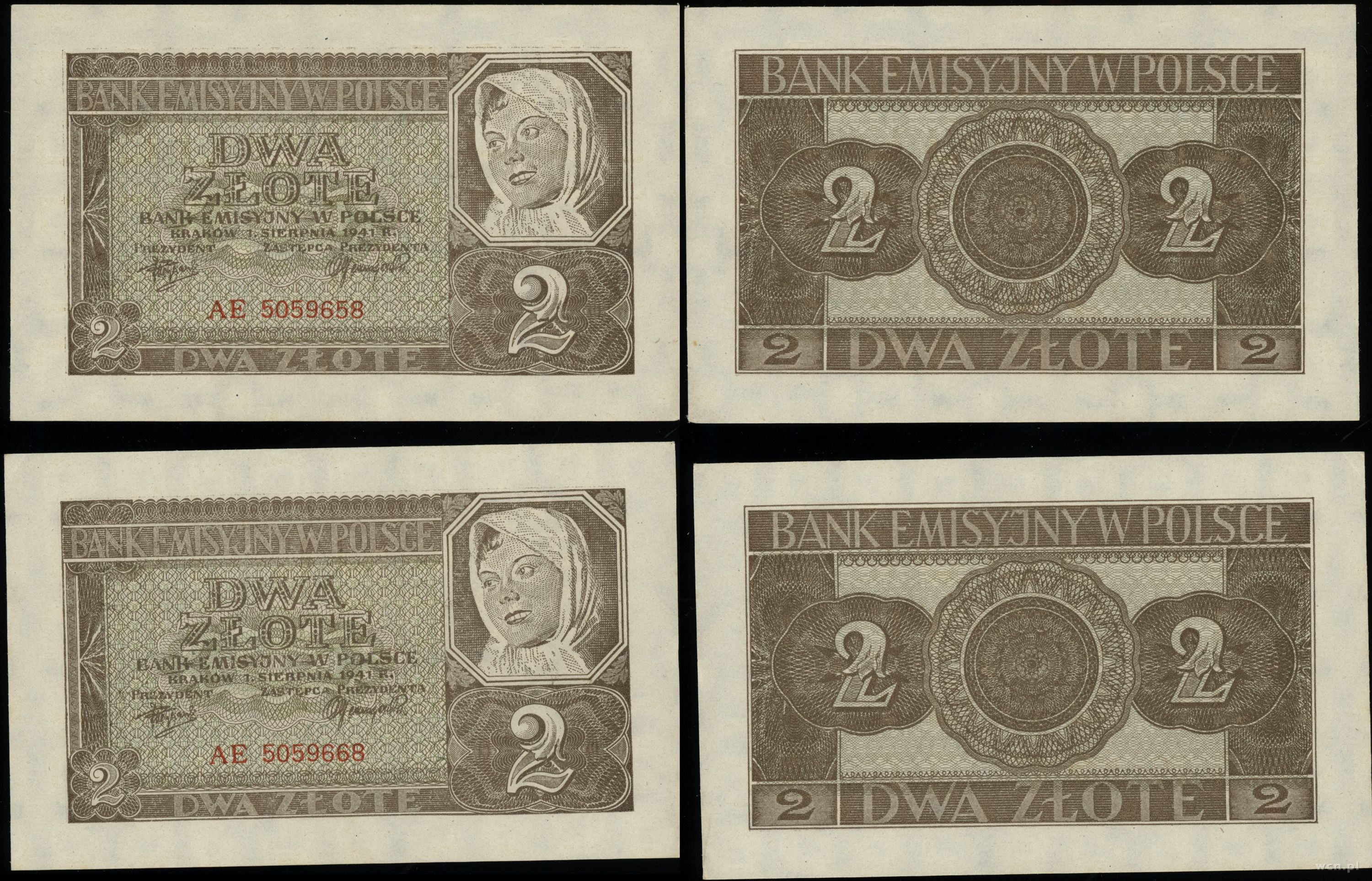 Polska, zestaw: 2 x 2 złote, 1.08.1941