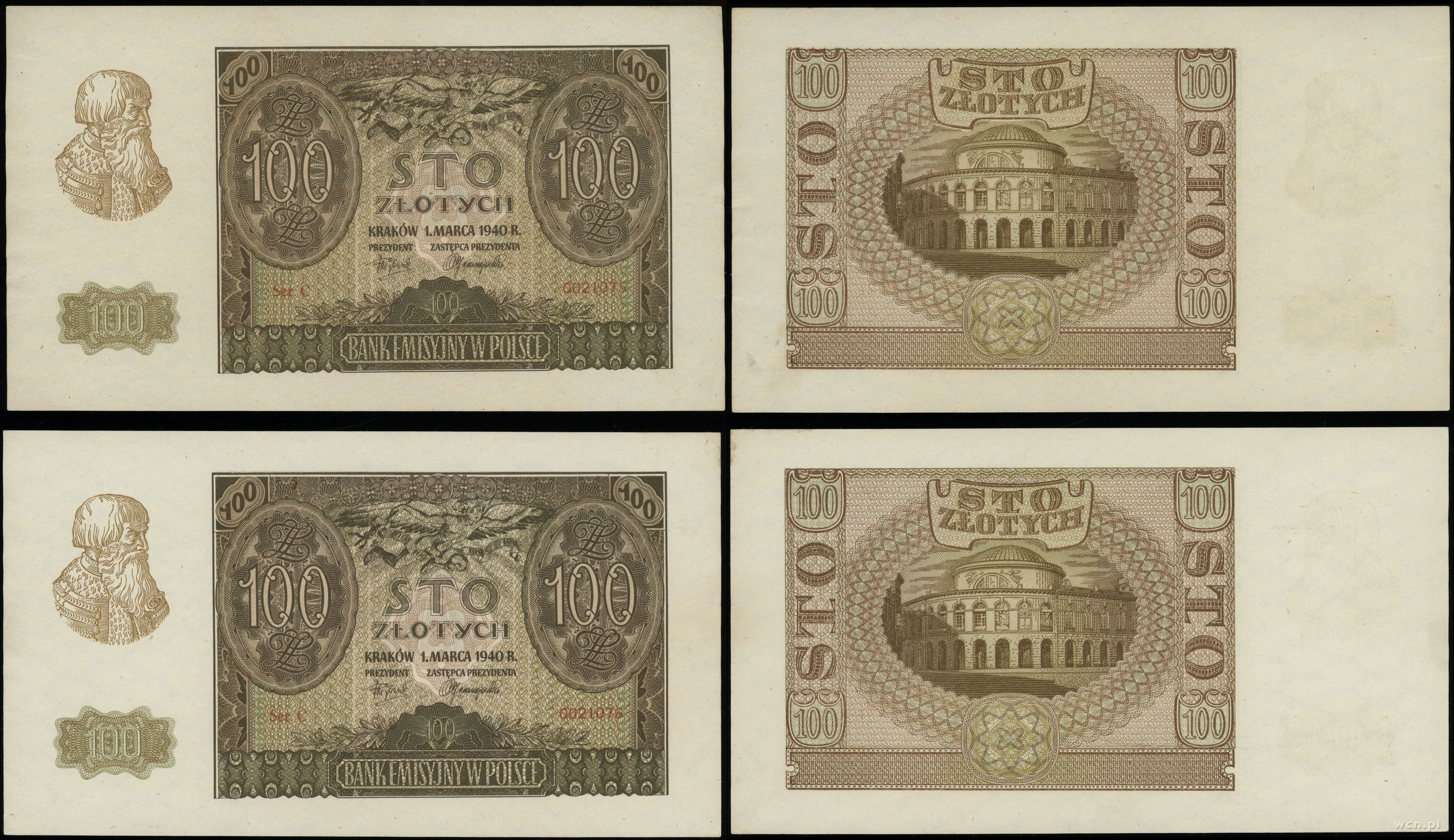 Polska, zestaw: 2 x 100 złotych, 1.03.1940