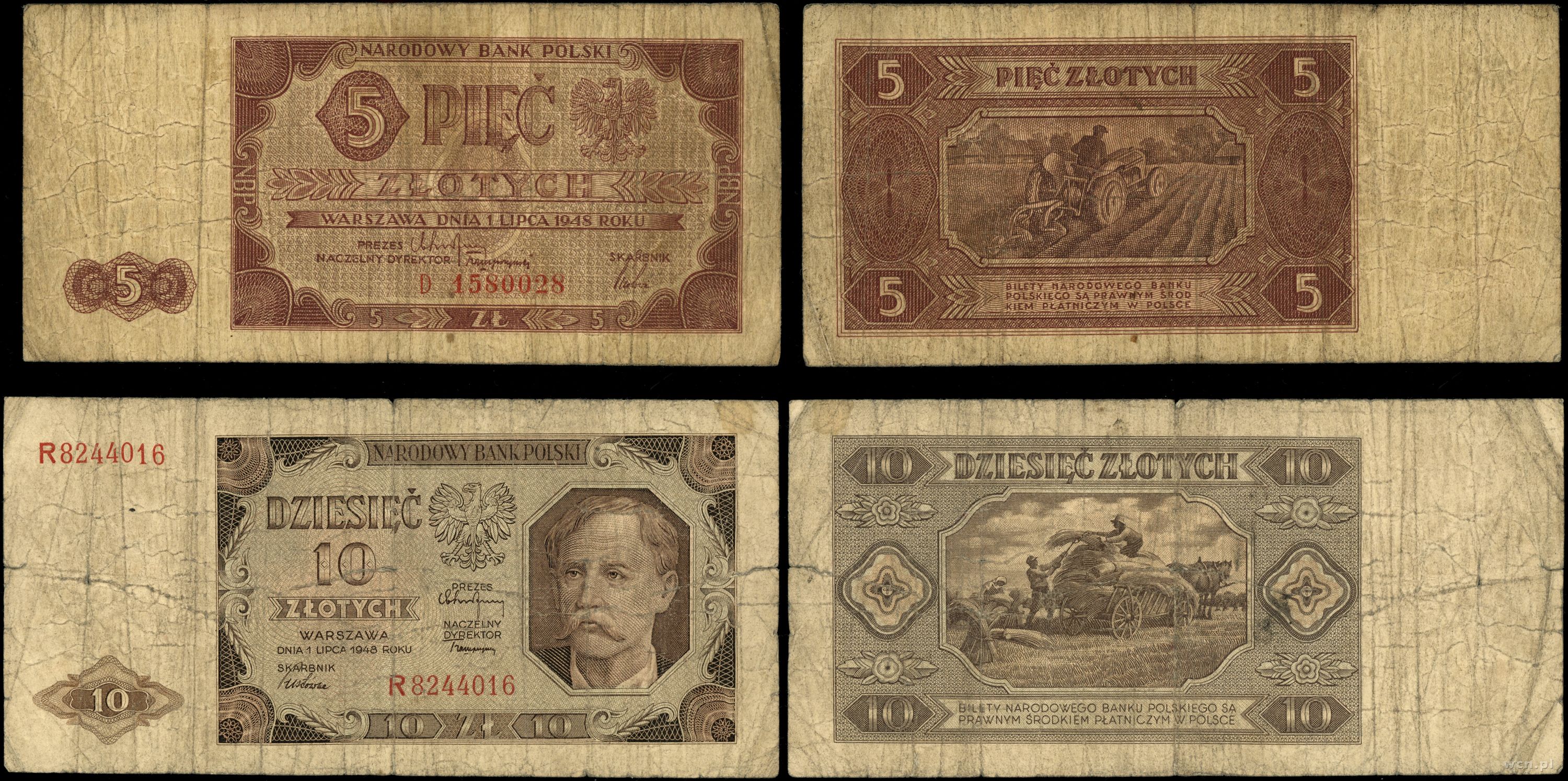 Polska, zestaw: 5 i 10 złotych, 1.07.1948