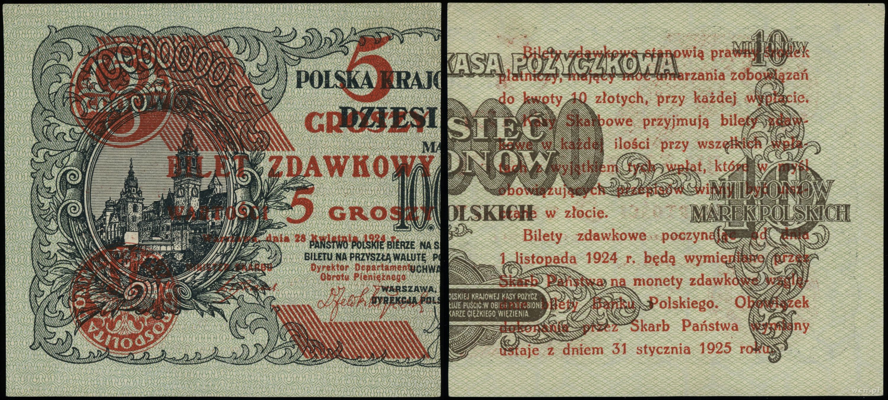Polska, bilet zdawkowy – 5 groszy, 28.04.1924