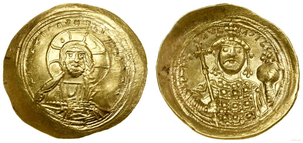 Opis: | Bizancjum - Konstantyn IX Monomachus (1042–1055), histamenon nomisma, ok. 1042–1055, Konstantynopol, Aw: Popiersie Chrystusa w nimbusie na wprost, + IhS XIS REX REGNANTIhM; Rw: Popiersie cesarza w loros na wprost, trzymającego krzyż i glob z krzyżem, CωhSTAhThIhOS bAS Rm |