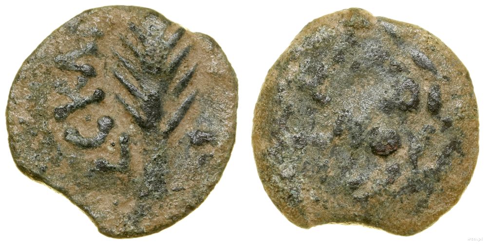 Opis: | Rzym prowincjonalny - Judea - prokurator Porcjusz Festus (58–62 ne), prutah, (58–59), Jerozolima, Aw: Napis [NЄP / ѠNOI] otoczony wieńcem, Rw: Gałązka palmowa, z lewej stronie [L E KAIC], z prawej [APOC] |