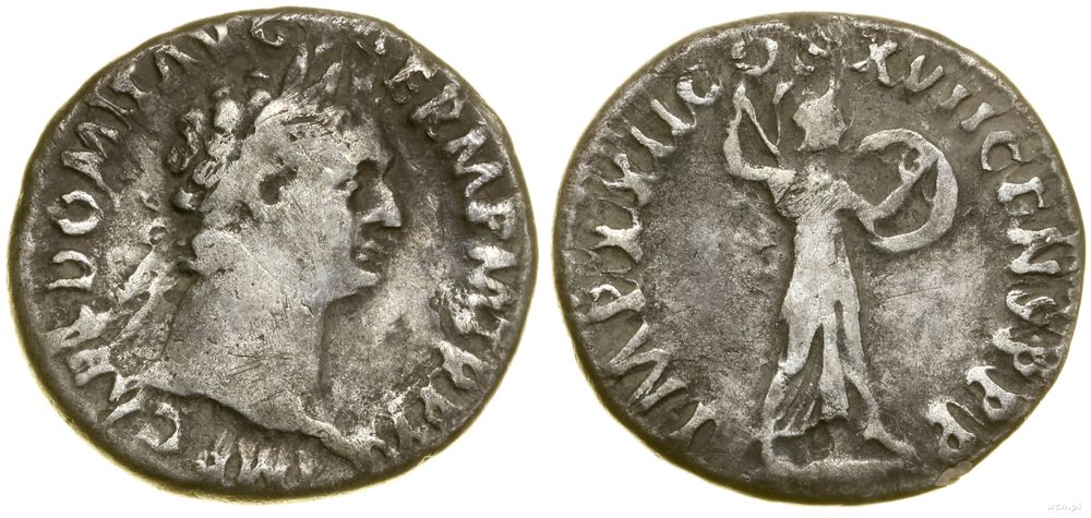 Opis: | Cesarstwo Rzymskie - Domicjan (81–96), denar, (95–96), Rzym, Aw: Głowa cesarza w wieńcu laurowym w prawo, IMP CAES DOMIT AVG GERM P M TR P XV, Rw: Minerwa stojąca na piedestale, w prawo, z tarczą i oszczepem, IMP XXII COS XVII CENS P P P |