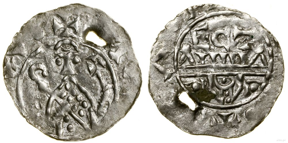 Opis: | Niderlandy - Utrecht – biskupstwo - bp Wilhelm von Ponte (1054–1076), denar, Aw: Półpostać na wprost z pastorałem i laską krzyżową, + WIL•HEL•M (wstecznie), Rw: Mur miejski z blankami, nad nim ECT, + WINOHL•ΛM (wstecznie) |
