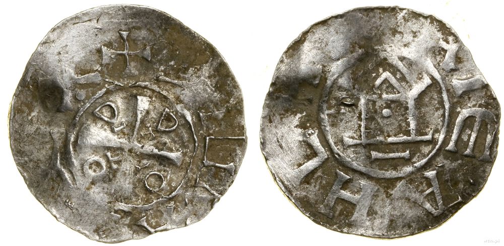 Opis: | Niemcy - Saksonia - Otto III (983–1002), denar typu OAP, Aw: Krzyż, w kątach O-D-D-O, + DI GR'A…X, Rw: Kaplica z poziomymi belkami, wewnątrz kulka, ATEAHLHT |