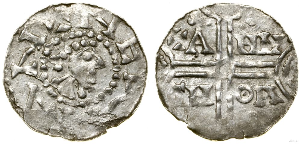 Opis: | Niemcy - Saksonia - Emden - hr. Herman IV von Werl (1047–1050), denar, Aw: Ukoronowane popiersie w prawo, + NERIAN; Rw: Krzyż dwunitkowy, w kątach litery +A - HN / TH - ON |