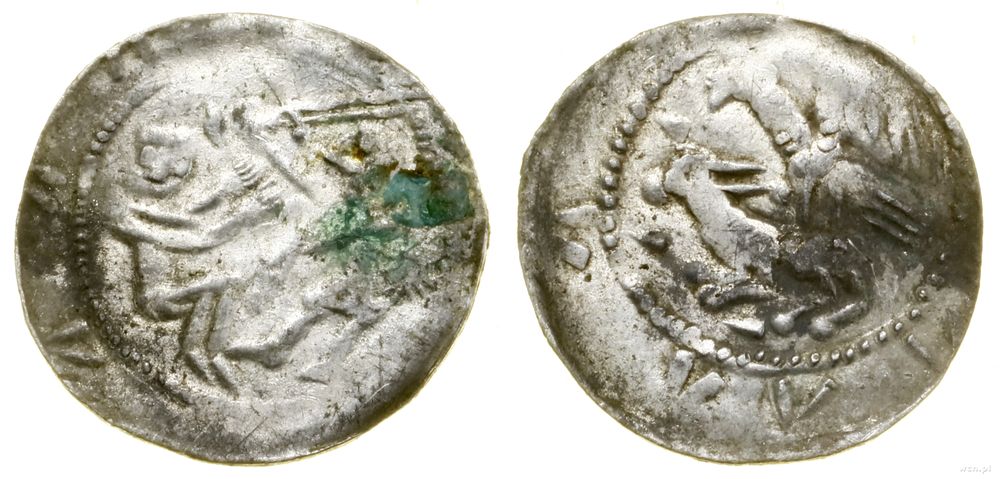 Opis: | Polska - Władysław II Wygnaniec (1138–1146), denar, (1138–1146), Aw: Rycerz z mieczem i tarczą, stojący nad jeńcem, legenda; Rw: Orzeł w locie, łapiący zająca, legenda |