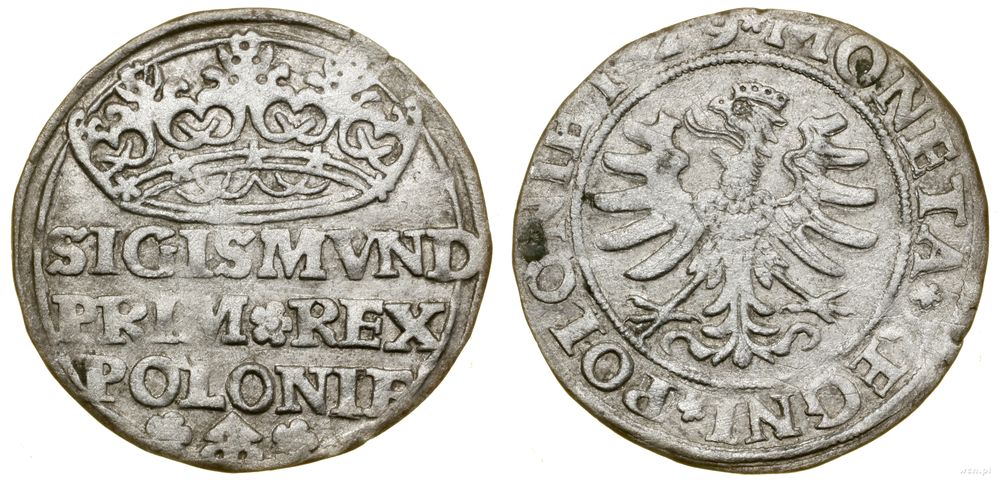 Opis: | Polska - Zygmunt I Stary (1506–1548) - monety koronne, grosz, 1529, Kraków, herb Odrowąż między rozetami |