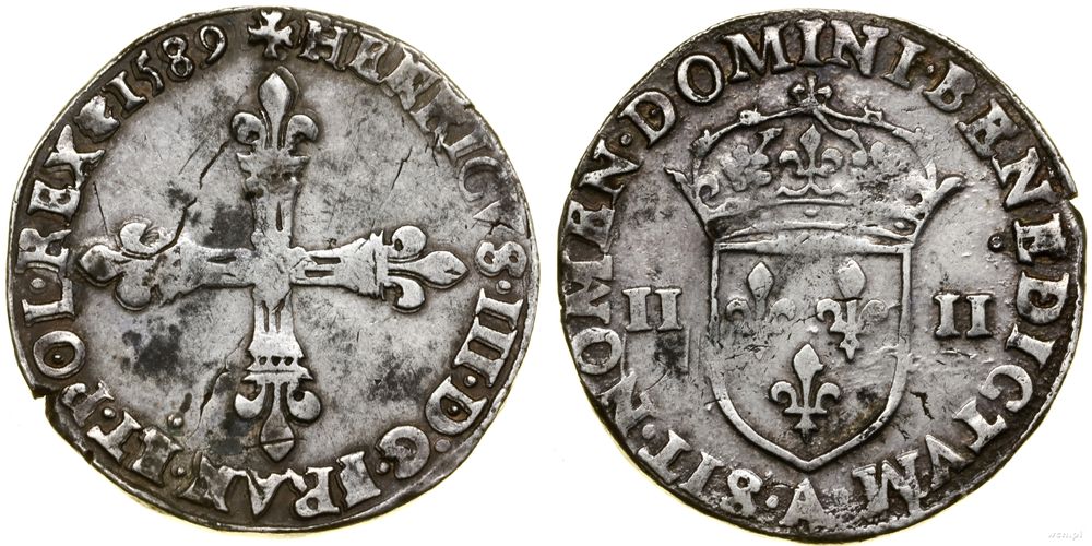 Opis: | Polska - Henryk Walezy (1573–1575–1589), 1/4 ecu, 1589 A, Paryż |