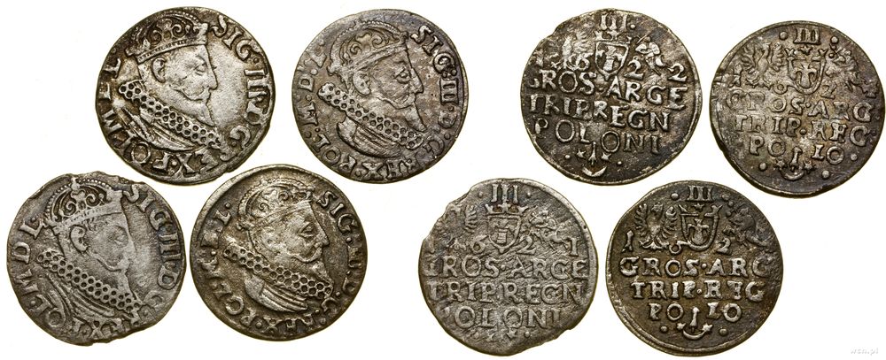 Polska, zestaw 4 x trojak, 1621, 1622, 2 x 1624