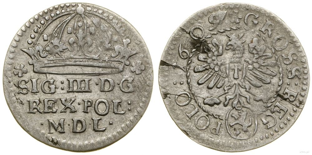 Opis: | Polska - Zygmunt III Waza (1587–1632) - monety koronne, grosz, 1609, Kraków, u dołu rewersu herb Lewart w owalnej tarczy |