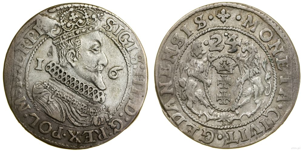 Opis: | Polska - Zygmunt III Waza (1587–1632) - miasto Gdańsk, ort, 1624, Gdańsk, data przebita z rocznika 1623, na awersie końcówka napisu R PR |