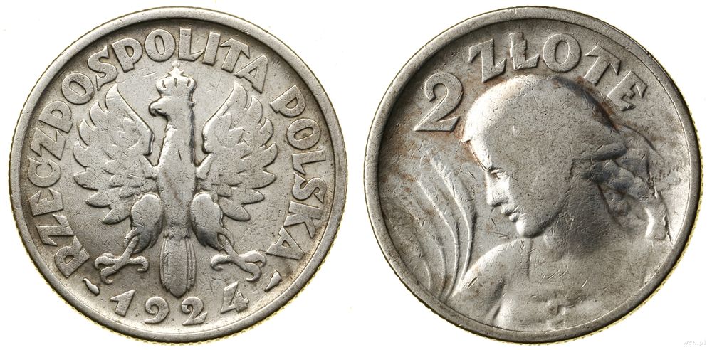 Opis: | Polska - II Rzeczpospolita Polska (1918–1939) - monety obiegowe, 2 złote, 1924, Paryż, popiersie kobiety z kłosami, odmiana z rogiem i pochodnią na awersie przy dacie |