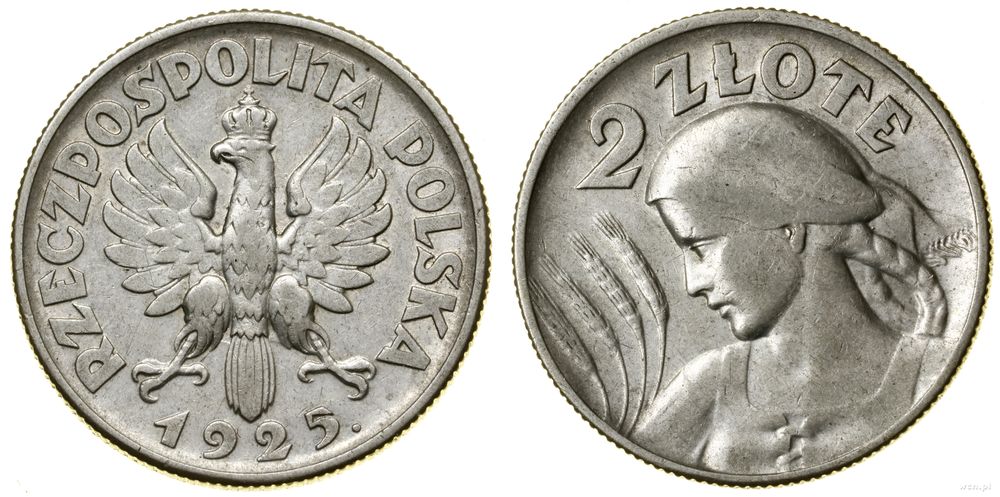 Opis: | Polska - II Rzeczpospolita Polska (1918–1939) - monety obiegowe, 2 złote, 1925, Londyn, popiersie kobiety z kłosami, odmiana z kropką po dacie |
