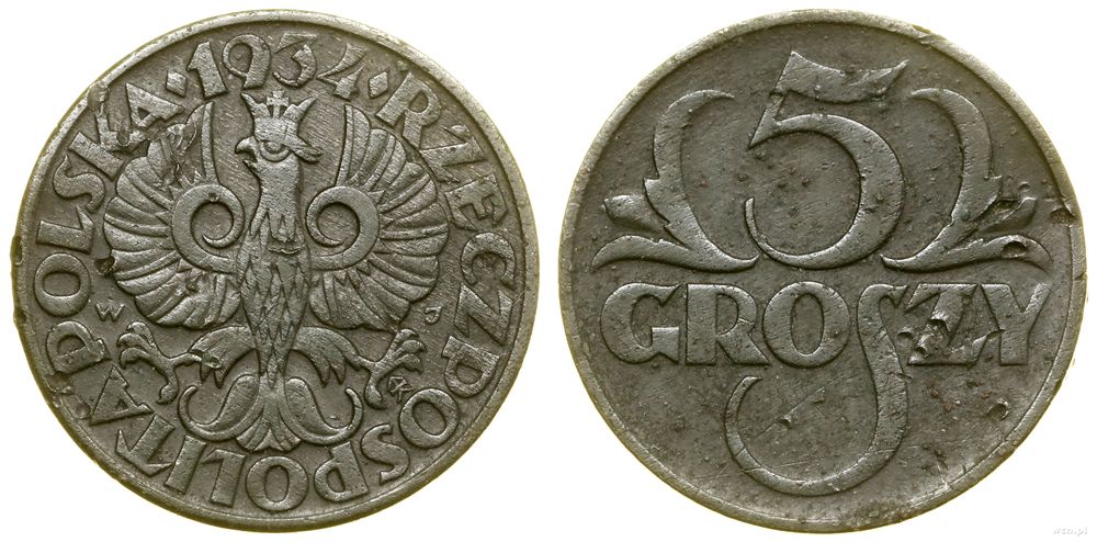 Opis: | Polska - II Rzeczpospolita Polska (1918–1939) - monety obiegowe, 5 groszy, 1934, Warszawa |
