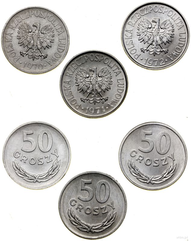 Polska, zestaw 3 x 50 groszy, 1970, 1971, 1972