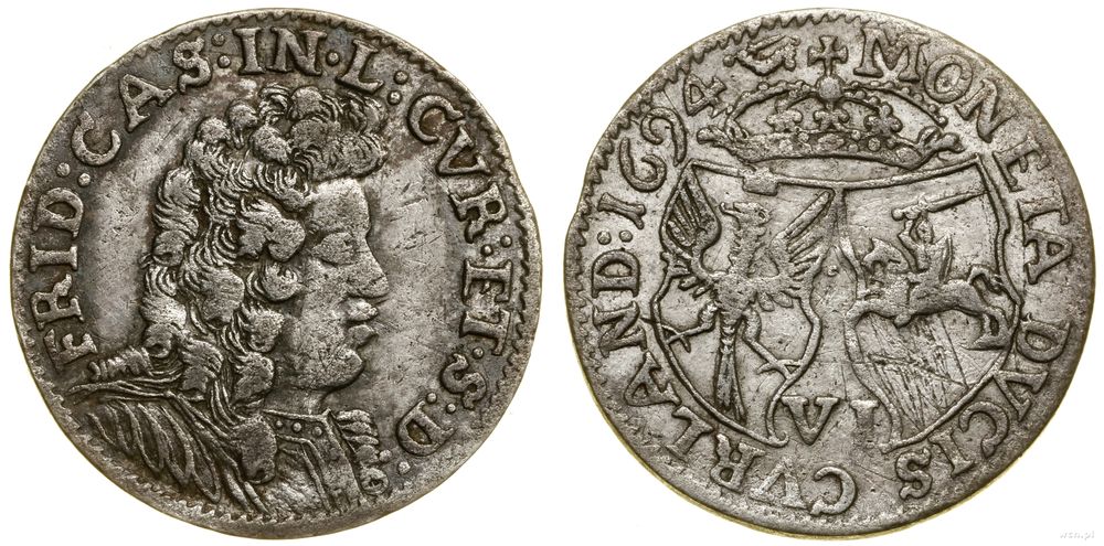 Opis: | Księstwo Kurlandii - Fryderyk Kazimierz Kettler (1682–1698), szóstak, 1694, Mitawa |