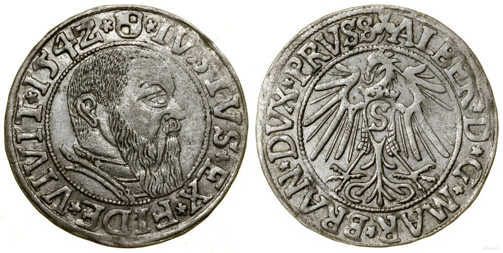 Opis: | Prusy Książęce (1525–1657) - Albert Hohenzollern (1525–1568), grosz, 1542, Królewiec, końcówka legendy rewersu PRVSS |