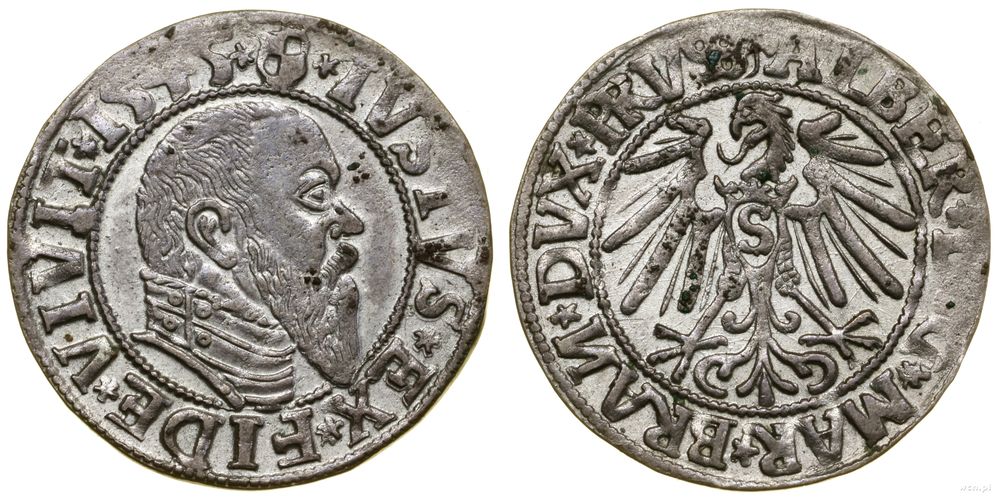 Opis: | Prusy Książęce (1525–1657) - Albert Hohenzollern (1525–1568), grosz, 1545, Królewiec, końcówka legendy PRVSS, BRAИ zamiast BRAN |