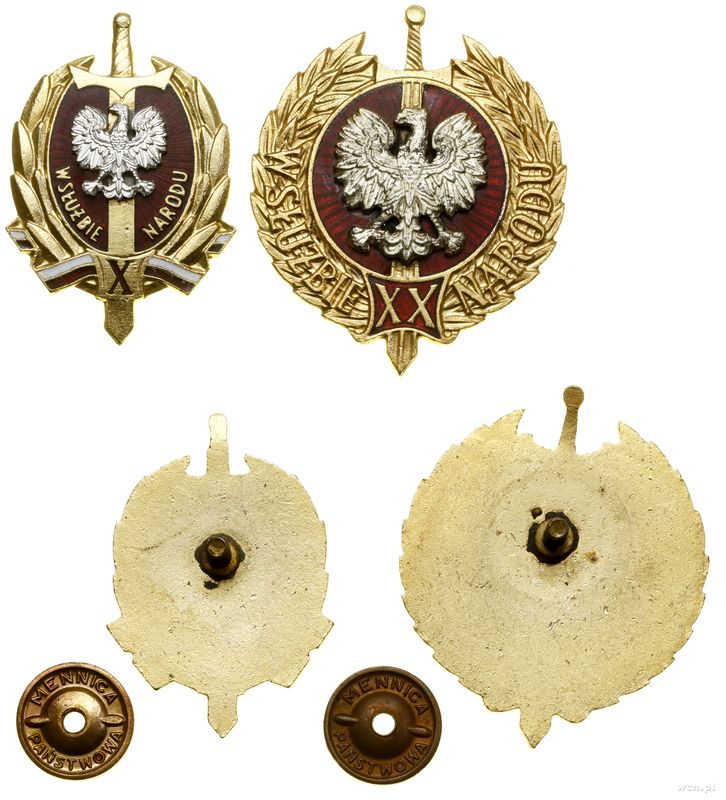 Opis: | Polska - Polska Rzeczpospolita Ludowa (1952–1989), Odznaki "X Lat w Służbie Narodu" i "XX Lat w Służbie Narodu", Warszawa |