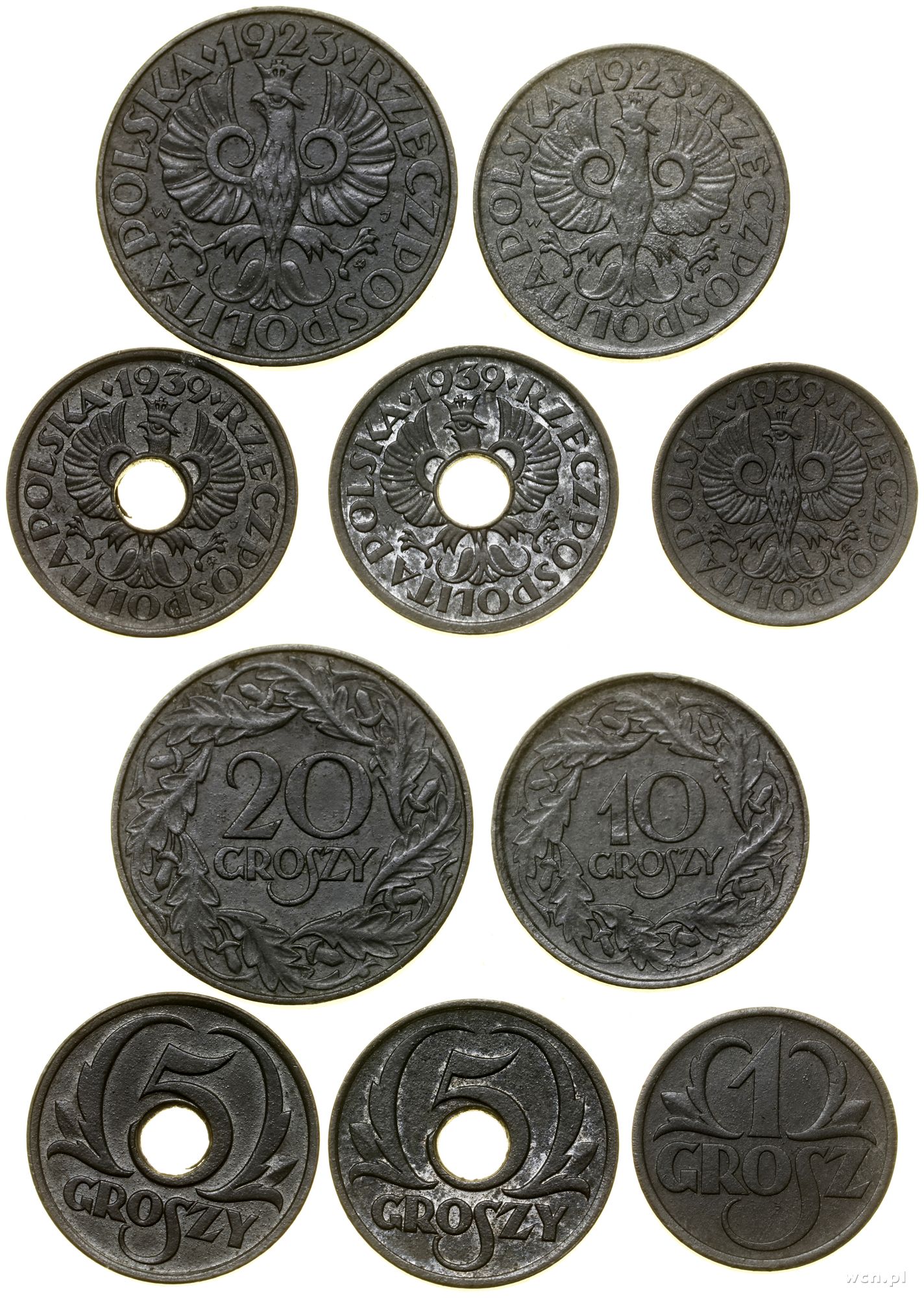 Polska, zestaw 5 monet, (1923–1939) bite w latach 1941–1944