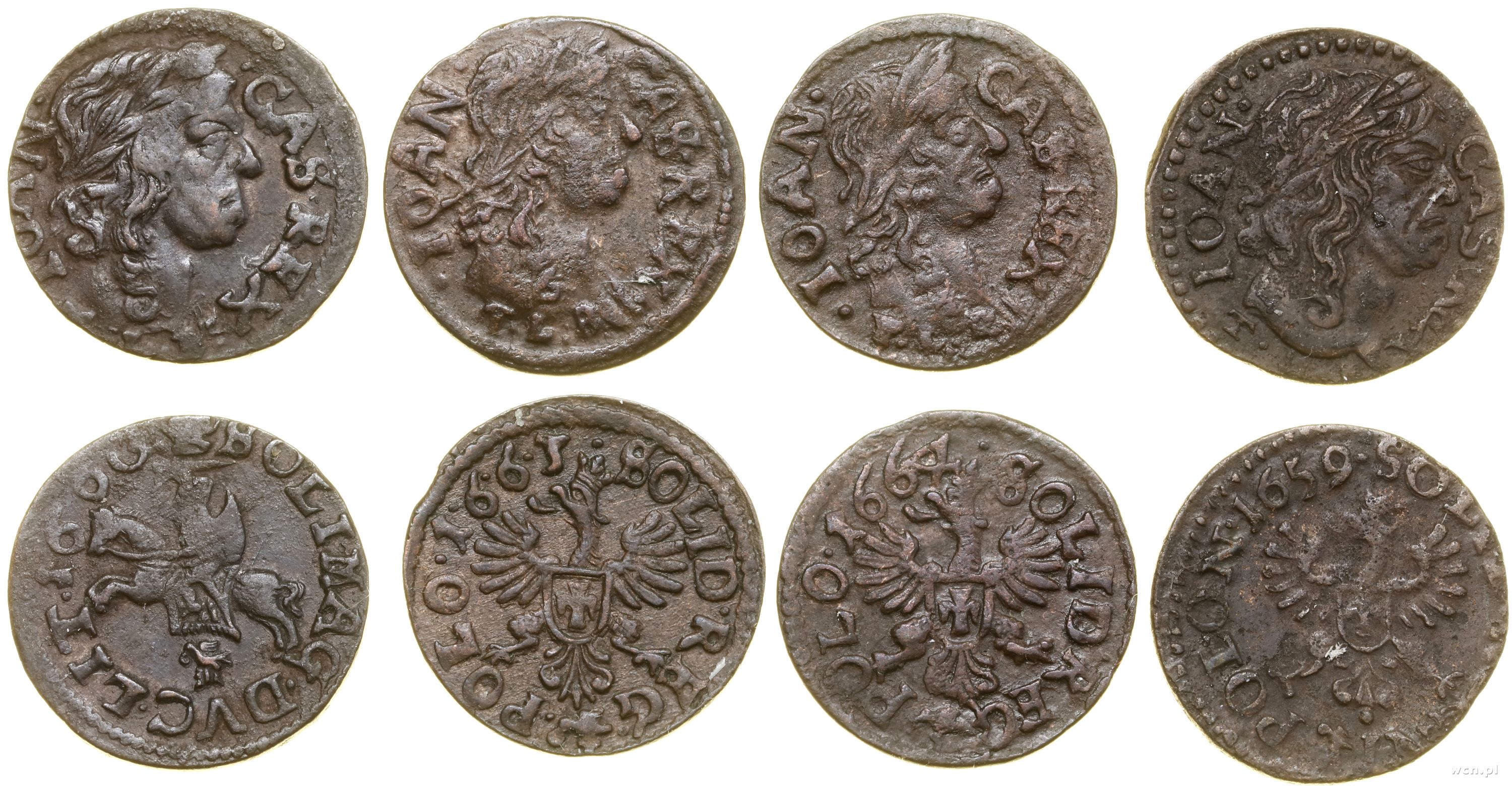 Polska, zestaw: 4 x szeląg miedziany (boratynka), 1659–1664