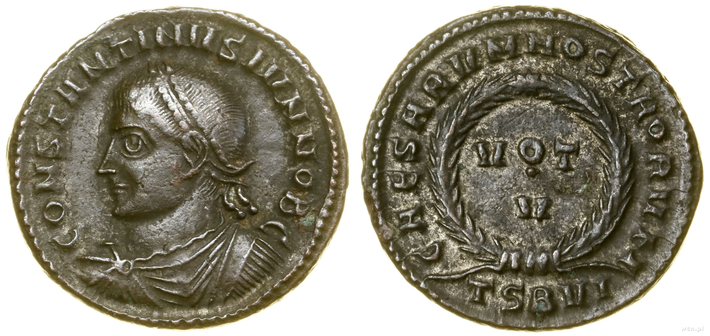 Aw: Popiersie w prawo, CONSTANTINVS IVN NOB C, Rw: Wienie... | III+ |