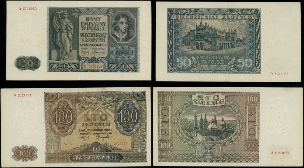 Polska, zestaw 5 banknotów, 1.08.1941