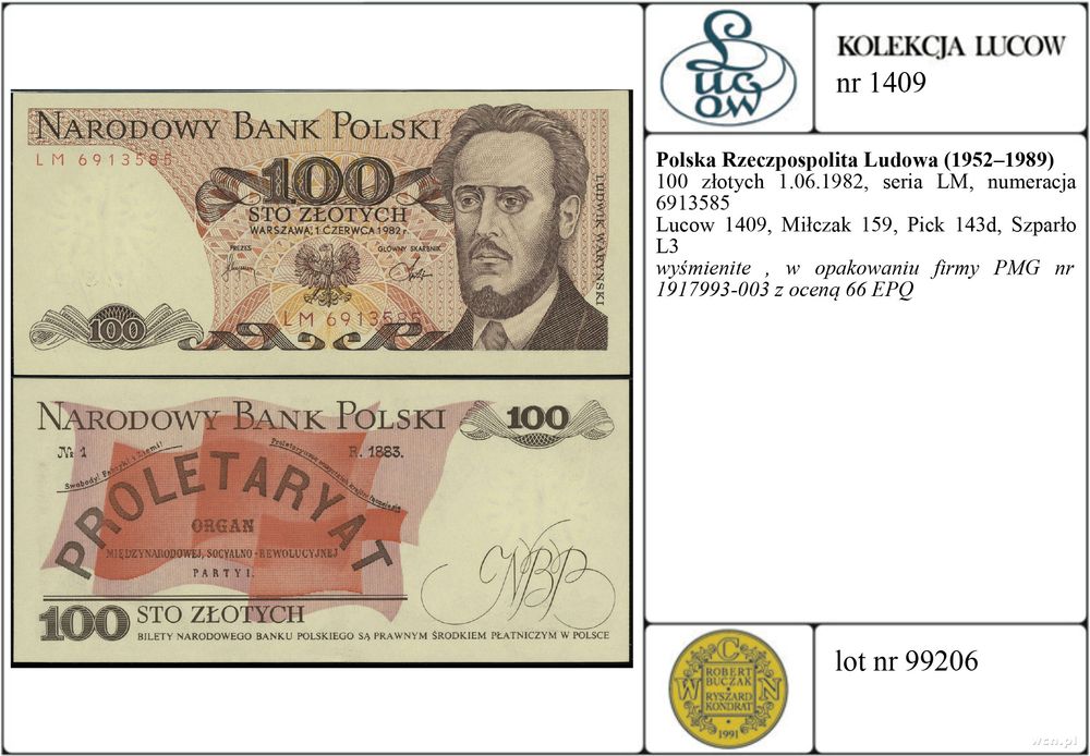 | Opis: | Polska - Polska Rzeczpospolita Ludowa (1952–1989), 100 złotych, 1.06.1982, seria LM, numeracja 6913585 |