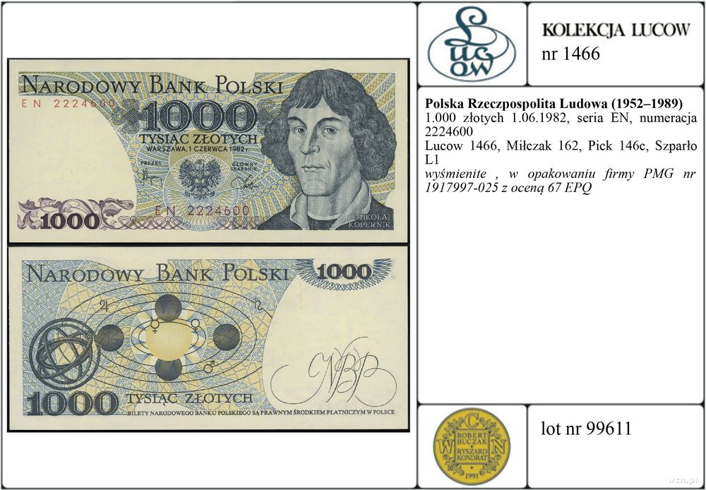 | Opis: | Polska - Polska Rzeczpospolita Ludowa (1952–1989), 1.000 złotych, 1.06.1982, seria EN, numeracja 2224600 |