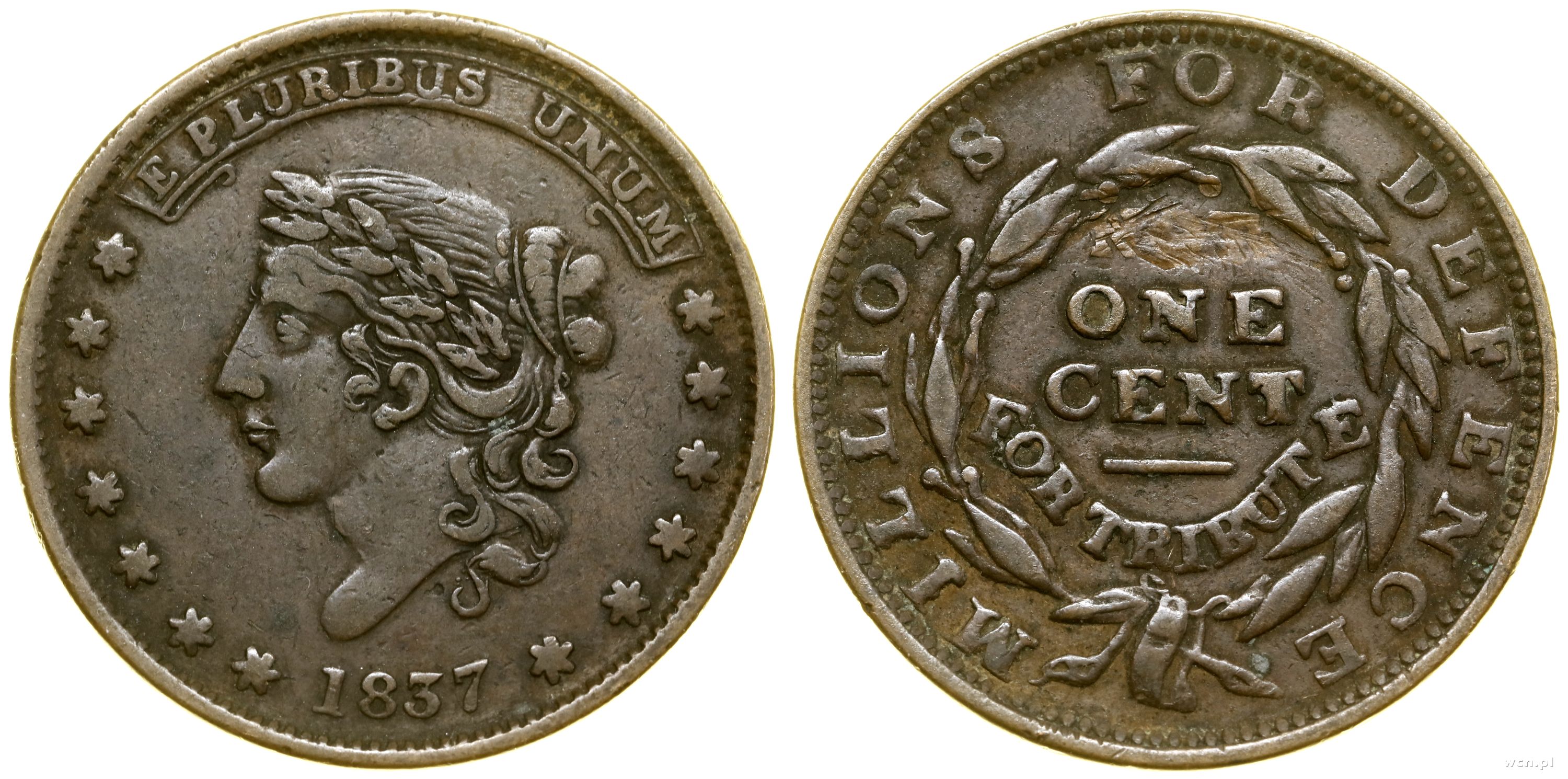 USA, żeton o nominale 1 cent – Miliony dla obrony, 1837