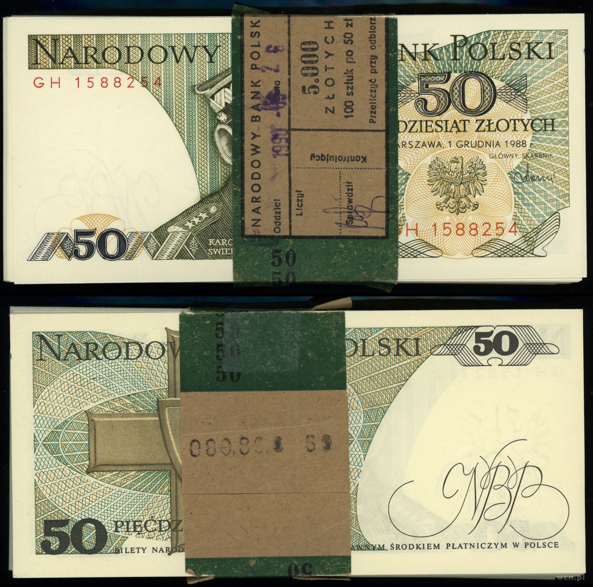 Polska, zestaw: 94 x 50 złotych z banderolą NBP, 1.12.1988