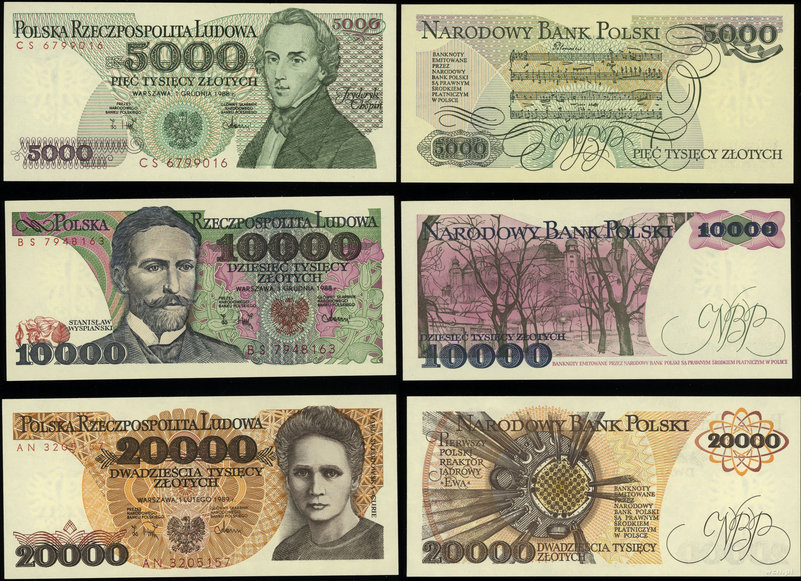 Polska, zestaw: 6 x 10.000 złotych, 1.12.1988