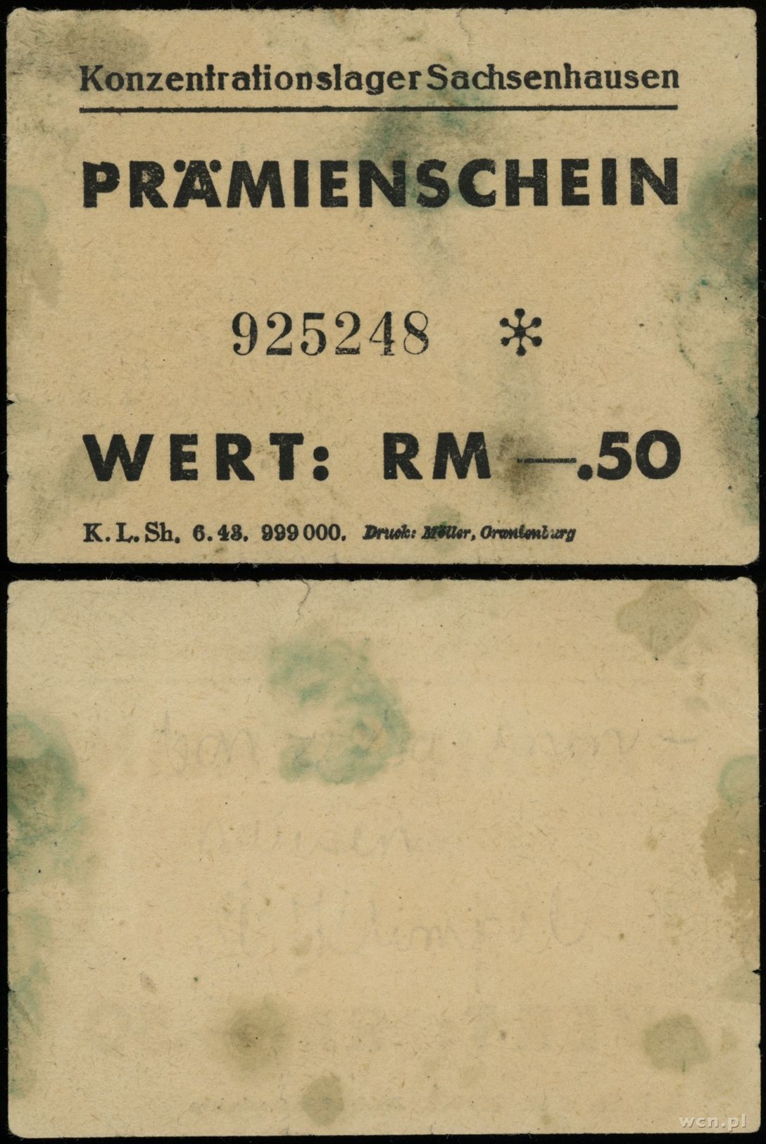 obóz koncentracyjny Sachsenhausen, bon na 0.50 marki, (1944)