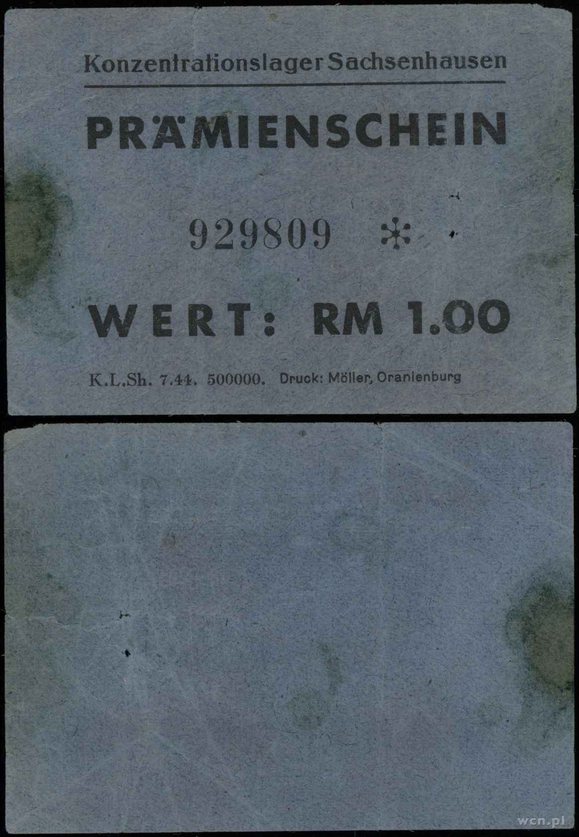 obóz koncentracyjny Sachsenhausen, bon na 1 markę, (1944)