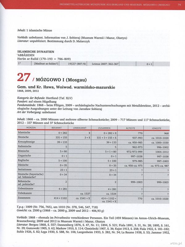 wydawnictwa polskie, Frühmittelalterliche Münzfunde aus Polen. Inventar V. Ermland und Masuren,..