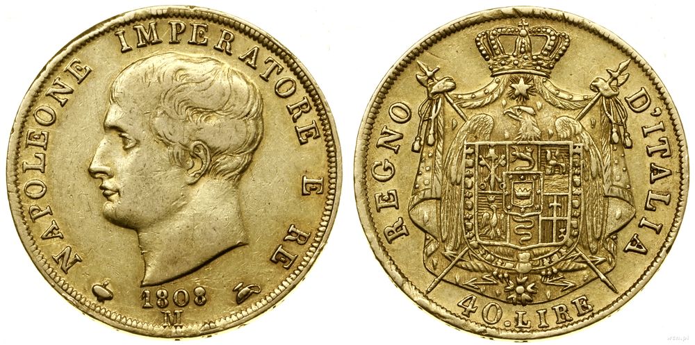 | Opis: | Włochy - Królestwo Włoch - Napoleon I (1805–1814), 40 lirów, 1808 M, Mediolan |